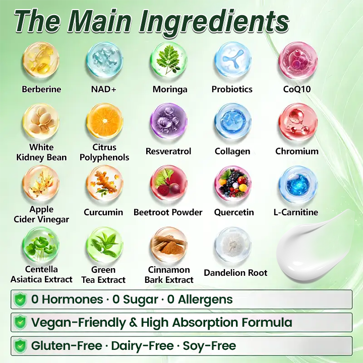 With aging, stress, and a fast-paced lifestyle, many people experience mood swings, anxiety, insomnia, memory decline, and brain fog from blood sugar fluctuations, inflammation, low energy, and nervous system overload. For women, menopause can further intensify hot flashes, mood instability, and poor sleep. To address this, key ingredients work together: Ashwagandha lowers stress hormones and improves sleep; Magnesium calms the nervous system; Omega-3 and Ginkgo Biloba protect neurons and boost focus; NAD+/NMN restore brain energy. Clinical data show that in 2–4 weeks, over 85% improved mood and sleep; in 4–6 weeks, about 80% saw better memory and less brain fog; and over 79% of women reported menopause symptom relief. Overall, this combination stabilizes mood, restores brainpower, and keeps the mind clear and focused.