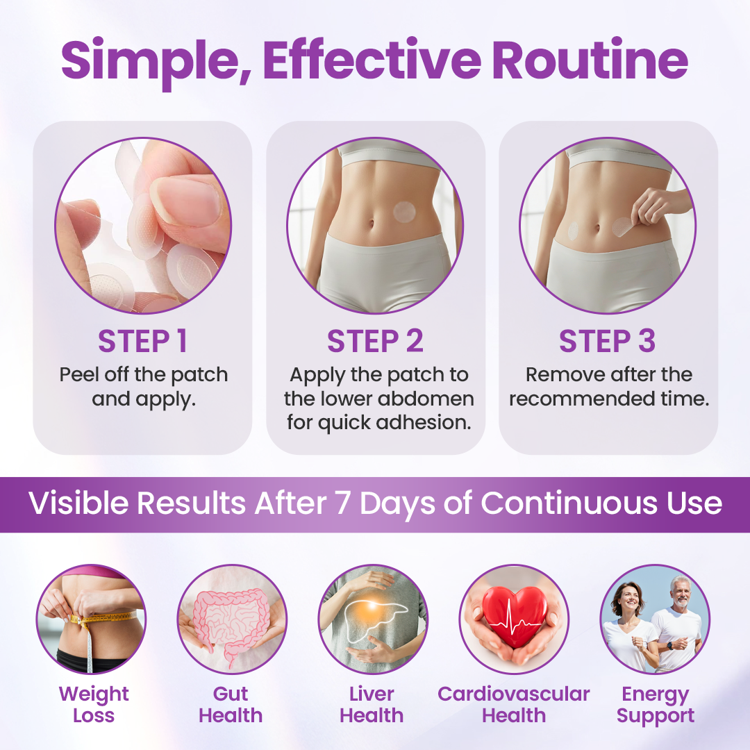 This 100% natural, scientifically formulated patch bypasses the digestive system for safe, daily use with meals and products. Its vegan-friendly, non-GMO, gluten-free, soy-free, and free from hormones, sugars, and allergens. With advanced transdermal technology, it delivers active compounds slowly for sustained, gentle support, suitable for all skin and body types, and showing noticeable improvements in as little as 7 days.
