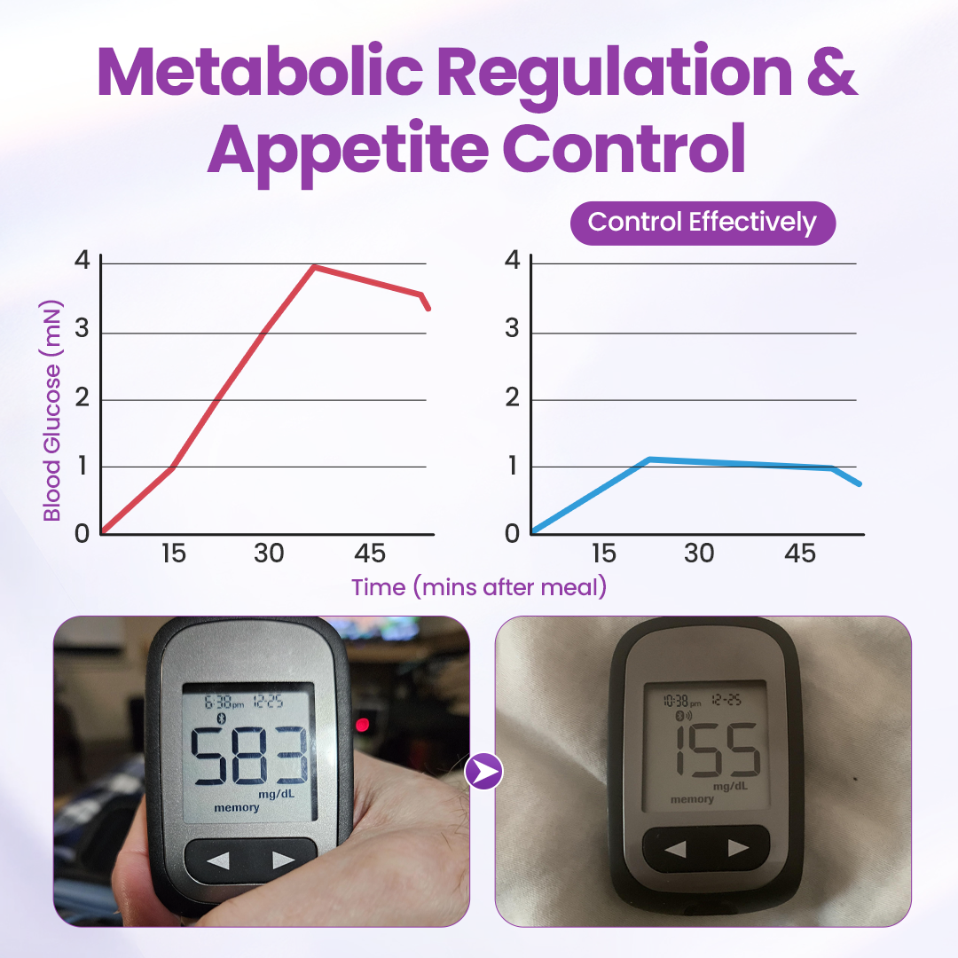Moringa and Berberine slow the absorption of carbohydrates, reduce post-meal blood sugar spikes, and optimize hepatic glycogen storage and fat metabolism efficiency. With continued use, participants experienced significant reductions in fasting blood glucose and HbA1c, improved energy utilization, and more stable blood glucose curves throughout the day. Insulin responsiveness was markedly enhanced, metabolic rate increased, and the synergistic effects of the compound resulted in lower blood sugar peaks, tighter blood glucose control, faster recovery, and overall improvement.